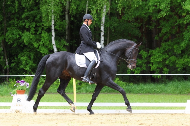 So konnte sich unsere St.-Pr. Stute "Diamantissima" (von Diamond Hit/Camapri) in ihrer ersten Dressurpferde L mit Stefan Puschmann auf dem zweiten Platz platzieren.